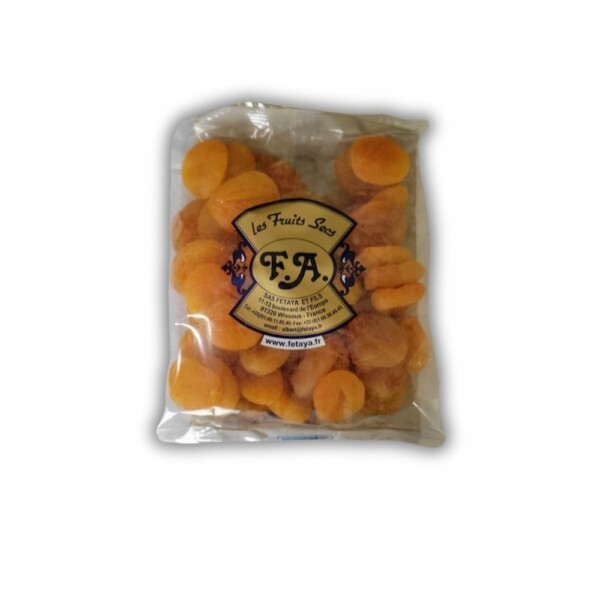 Abricot FTY, sachet de 500g. Abricots secs moelleux pour en-cas et pâtisseries. Vente en gros.