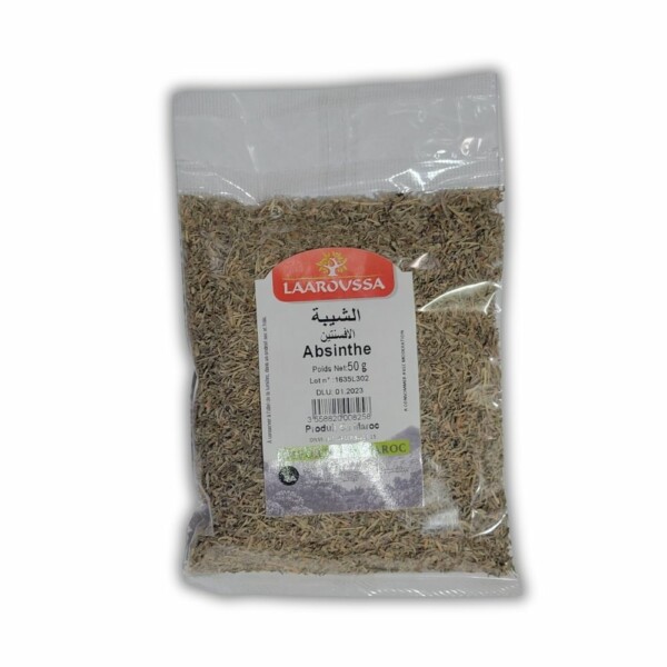 La feuille d’absinthe 50g est utilisée pour ses vertus digestives et ses infusions médicinales. Vente en gros sur Kartout Market.