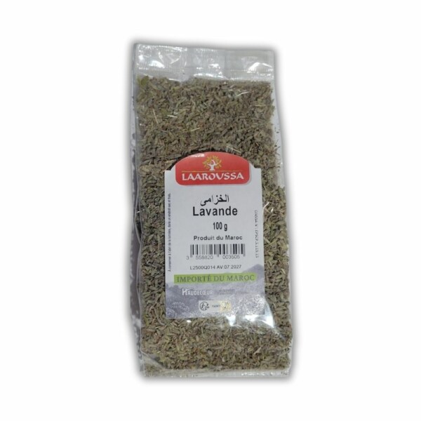 La lavande séchée Laaroussa 100 g est prisée pour ses propriétés calmantes, utilisée en infusion, dans les soins ou en aromathérapie. Produit naturel à forte valeur ajoutée pour le bien-être.